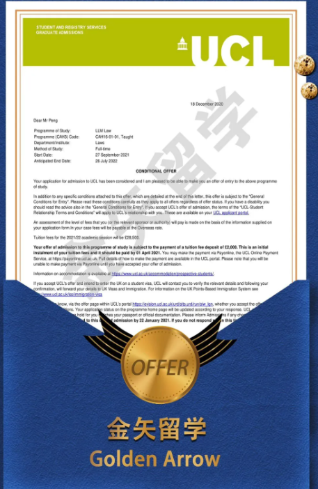 恭喜彭同学获得QS世界大学排名#10 UCL伦敦大学学院法律专业录取!