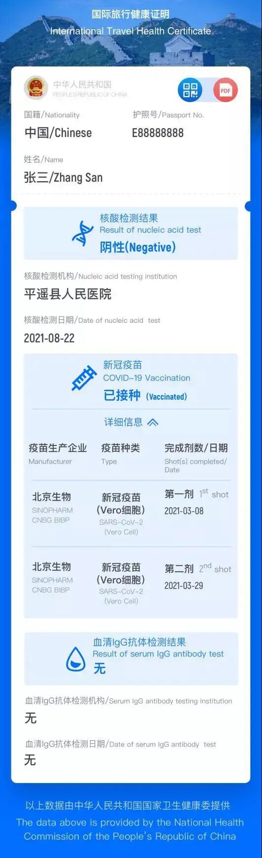 ▶第三步:生成核酸及血清IgG抗体检测结果、新冠疫苗接种记录的国际旅行健康证明。